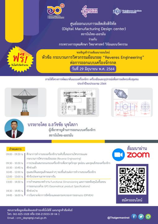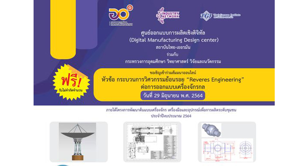 ขอเชิญเข้าร่วมสัมมนาออนไลน์ กระบวนการวิศวกรรมย้อนรอย “Reveres Engineering” ต่อการออกแบบเครื่องจักรกล