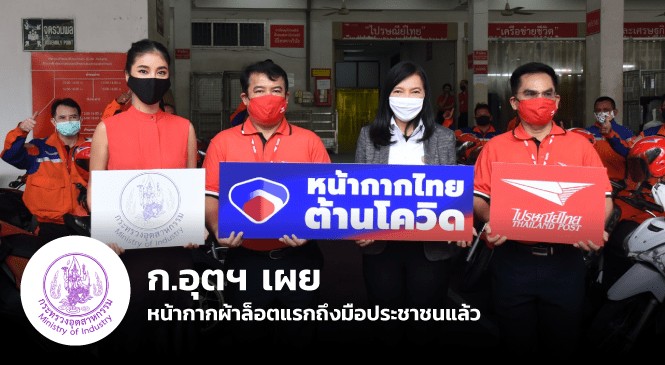 ทั้งนี้ไปรษณีย์ไทยได้ร่วมกับกระทรวงอุตสาหกรรม จัดทำซองไปรษณีย์ขึ้นมาพิเศษเพื่อใช้สำหรับการจัดส่งหน้ากากผ้าในระบบไปรษณีย์ด่วนพิเศษ (EMS) ตามโครงการผลิตหน้ากากผ้าเพื่อลดปัญหาการขาดแคลนหน้ากากอนามัยและป้องกันการระบาดของโรคติดเชื้อไวรัสโคโรน่า 2019 (COVID-19) แก่ประชาชนของกระทรวงอุตสาหกรรมโดยเฉพาะโดยกระทรวงฯ ให้ความสำคัญกับความปลอดภัยของประชาชนในช่วงการแพร่ระบาดของ โรคติดเชื้อของไวรัสโคโรน่า 2019 (โควิด-19) หน้ากากผ้าเหล่านี้จะต้องผ่านการตรวจสอบและรับรอง มาตรฐานผ้า และการตัดเย็บ พร้อมส่งตัวอย่างหน้ากากผ้าให้สถาบันพัฒนาอุตสาหกรรมสิ่งทอตรวจสอบคุณภาพทั้งก่อนและหลังการผลิต เพื่อให้มั่นใจว่าหน้ากากผ้าที่จะแจกจ่ายให้ประชาชน ได้มาตรฐานตามที่กระทรวงอุตสาหกรรมกำหนด