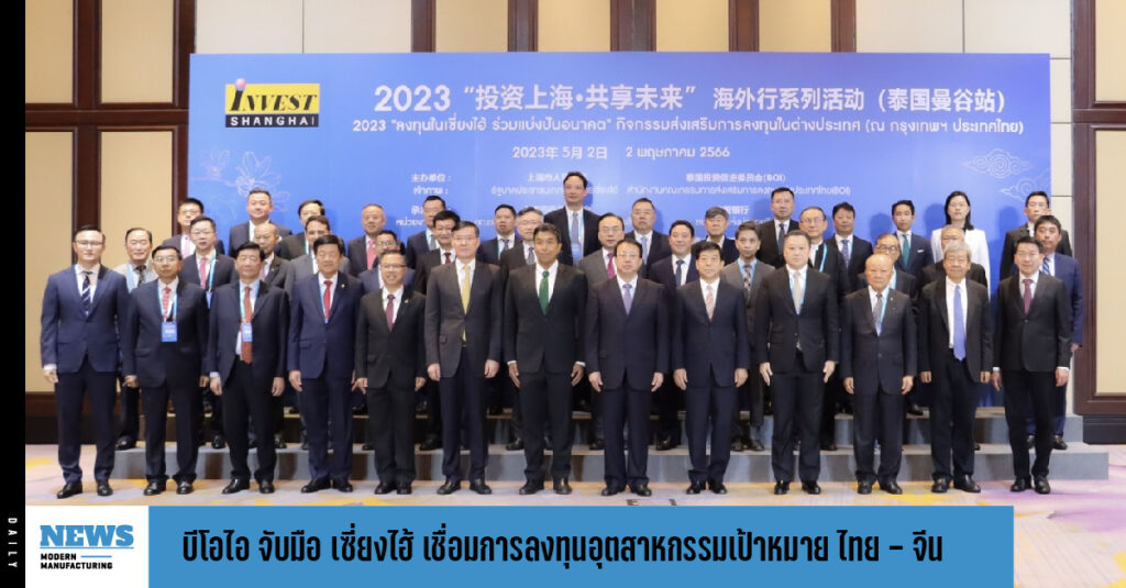 บีโอไอ จับมือนครเซี่ยงไฮ้ จัดงาน “ลงทุนเซี่ยงไฮ้ ร่วมแบ่งปันอนาคต” เชื่อมโยงการลงทุนไทย – จีน ผนึกกำลังก้าวสู่อุตสาหกรรมแห่งอนาคต ชี้โอกาสการลงทุนในอุตสาหกรรมเป้าหมาย