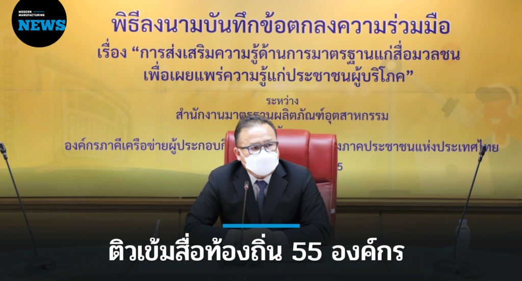 สมอ. จับมือภาคีเครือข่ายผู้ประกอบกิจการวิทยุกระจายเสียงภาคประชาชนแห่งประเทศไทย ติวเข้มนักจัดรายการวิทยุท้องถิ่นและสื่อออนไลน์ทั่วประเทศ 55 องค์กร กว่า 2,000 สถานี เผยแพร่ความรู้ มอก. สู่ประชาชน