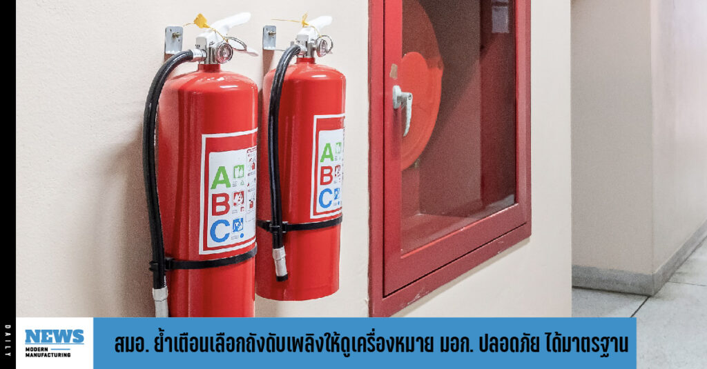 สมอ. ย้ำเตือนประชาชนเลือกซื้อถังดับเพลิง ให้ดูเครื่องหมายมาตรฐาน มอก. เท่านั้น เพื่อความปลอดภัย เร่งทบทวนมาตรฐานถังบรรจุก๊าซทุกชนิดเตรียมประกาศเป็นสินค้าควบคุม