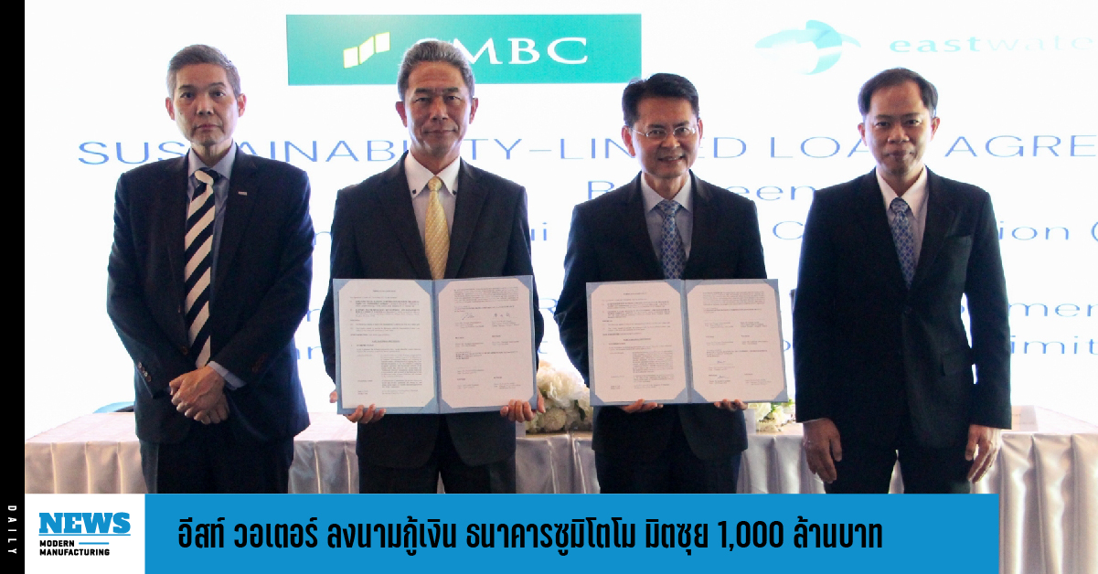 บริษัท จัดการและพัฒนาทรัพยากรน้ำภาคตะวันออก จำกัด (มหาชน) หรือ อีสท์ วอเตอร์ โดย นายเชิดชาย ปิติวัชรากุล กรรมการผู้อำนวยการใหญ่ ได้ลงนามในสัญญาเงินกู้เพื่อความยั่งยืน (Sustainability-Linked Loan) กับธนาคารซูมิโตโม มิตซุย แบงกิ้ง คอร์ปอเรชั่น (Sumitomo Mitsui Banking Corporation) โดย Mr. Takashi Toyoda, Country Head of Thailand, General Manager, Bangkok Branch และนายวรพัฒน์ เชาวนาสมิธ Head of Thailand–Corporate Banking, Asia Pacific ด้วยวงเงินจำนวน 1,000 ล้านบาท ระยะเวลา 3 ปี