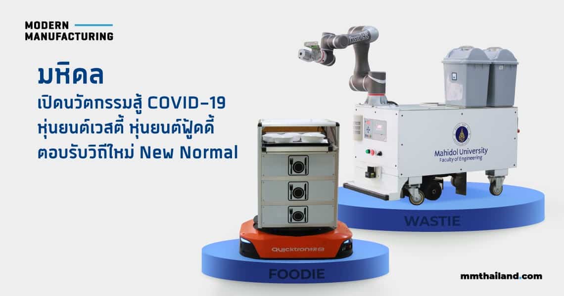 การแพร่ระบาดของไวรัส COVID-19 เป็นแรงบันดาลใจให้เกิดนวัตกรรมต่าง ๆ ขึ้นมาเพื่อตอบสนองความต้องการของบุคลากรทางการแพทย์ คณะวิศวกรรมศาสตร์ มหาวิทยาลัยมหิดล ร่วมกับศูนย์การแพทย์กาญจนาภิเษก คณะแพทยศาสตร์ศิริราชพยาบาล มหาวิทยาลัยมหิดล ผนึกความร่วมมือสร้าง 2 นวัตกรรม หุ่นยนต์เวสตี้ (Wastie) เก็บขยะติดเชื้อ และหุ่นยนต์ฟู้ดดี้ (Foodie) ส่งอาหาร-ยาในหอผู้ป่วย เพื่อลดความเสี่ยงอันตรายต่อการติดเชื้อและทดแทนงานหนักของบุคลากรทางการแพทย์ในโรงพยาบาล คาดว่าจะนำมาใช้ในโรงพยาบาลและโรงพยาบาลสนามในเร็วๆ นี้