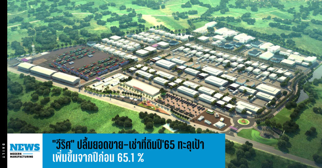 “วีริศ” เผยยอดขาย/เช่าที่ดินพื้นที่นิคมอุตสาหกรรม ปี 2565 ทะลุเป้ากว่า 2,000 ไร่ เพิ่มขึ้นจากปีก่อน 65.1 % เป็นไปตามที่เคยคาดการณ์ไว้ก่อนหน้า หลังมีการเปิดประเทศ แย้มต่างชาติสนใจติดต่อขอเข้าชมพื้นที่อย่างต่อเนื่อง เล็งขยับเป้าขาย/เช่าที่ดินปีหน้าเพิ่มขึ้นอีก