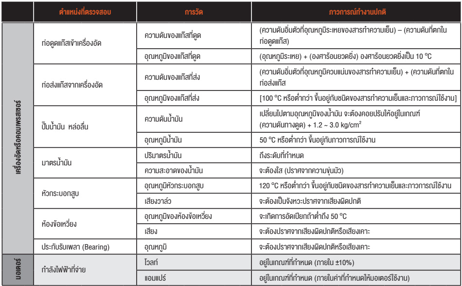 ตำแหน่งที่จะต้องคอยตรวจสอบเพื่อการบำรุงรักษาระหว่างการทำงานปกติของเครื่องทำความเย็น