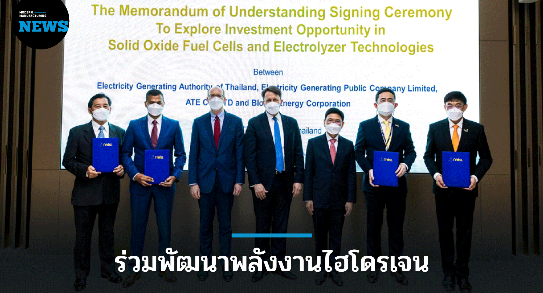 นายบุญญนิตย์ วงศ์รักมิตร ผู้ว่าการ กฟผ. กล่าวว่า เป็นความร่วมมือระหว่างไทยและสหรัฐอเมริกา โดยในส่วนของไทย ได้แก่ กฟผ. ในฐานะรัฐวิสาหกิจชั้นนำด้านพลังงาน ภายใต้สังกัดกระทรวงพลังงาน ได้ตอบสนองต่อนโยบายโดยจัดหาเทคโนโลยีผลิตไฟฟ้าใหม่ ซึ่งปล่อยคาร์บอนเป็นศูนย์และนำเทคโนโลยีดังกล่าวมาพัฒนาในไทย และเอ็กโก กรุ๊ป ซึ่งเป็นบริษัทพลังงานของไทย ที่ กฟผ. เป็นผู้ถือหุ้นรายใหญ่ รวมถึง บริษัท เอ ที อี จำกัด ซึ่งเป็นผู้ให้บริการชั้นนำด้านพลังงาน รวมถึงให้บริการติดตั้งในด้านพลังงานหมุนเวียน และมีการผลิตพลังงานในรูปแบบ Green Hydrogen และในส่วนของสหรัฐ ฯ โดยบริษัท Bloom Energy Corporation ในฐานะผู้ผลิตอุปกรณ์ที่เกี่ยวข้องกับการผลิตไฟฟ้าจากเชื้อเพลิงไฮโดรเจน ด้วยเทคโนโลยี SOFC และ SOEC ซึ่งจะมาช่วยลดการปล่อยก๊าซคาร์บอนไดออกไซด์ ผ่านการปรับปรุงระบบโครงข่ายไฟฟ้าให้สะอาดและมีประสิทธิภาพมากขึ้น