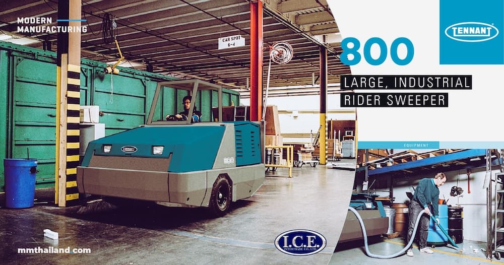 เครื่องกวาดพื้นแบบนั่งขับสำหรับงานอุตสาหกรรมระดับ Heavy Duty รุ่น 800 จาก Tennant แบรนด์คุณภาพจากสหรัฐอเมริกา ด้วยระยะการกวาดทำความสะอาดที่กว้างและมีถังพักขยะขนาดใหญ่เพื่อกักเก็บทุกอย่างตั้งแต่ ฝุ่นปูซีเมนต์ไปจนถึงฝุ่นขนาดใหญ่ เหมาะสำหรับโรงงานอุตสากรรมหนัก เช่น โรงงานเหล็ก โรงงานปูนซีเมนต์ โรงงานผลิตแก้ว เป็นต้น