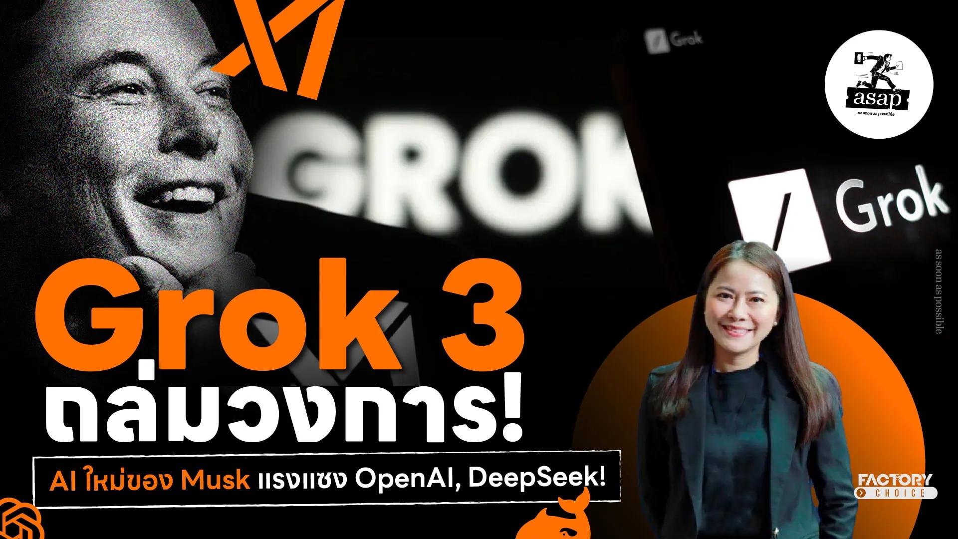 Elon Musk และ xAI เปิดตัว Grok 3 พร้อมเคลมว่าทรงพลังและฉลาดกว่าคู่แข่ง! แต่ AI ตัวนี้จะโค่น OpenAI และ DeepSeek ได้จริงหรือ? หรือเป็นแค่โฆษณาชวนเชื่อ? ASAP EP.16 นี้จะพาไปหาคำตอบ กดดูเลย แล้วคุณคิดว่าใครจะเป็น “สุดยอด AI” แห่งอนาคต?