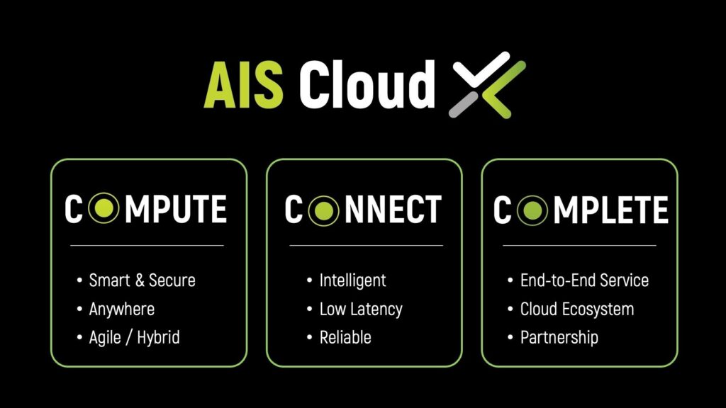 จุดเด่นที่ทำให้ AIS Cloud X เหนือกว่าผู้ให้บริการ Cloud ทั่วไปคือคอนเซปต์ Compute | Connect | Complete หัวใจสำคัญอยู่ตรงความร่วมมือของ 3 พันธมิตรยักษ์ใหญ่ที่นำทีมโดย AIS x Microsoft x VMware รวมกับผู้ให้บริการดิจิทัลโซลูชั่นระดับโลกอีกหลายรายที่จับมือร่วมกันทำให้ ระบบนิเวศคลาวด์อัจฉริยะ (Intelligent Cloud Ecosystem) เกิดขึ้นได้จริงเพื่อแก้ปัญหาและรับมือความท้าทายที่กล่าวไว้ข้างต้น