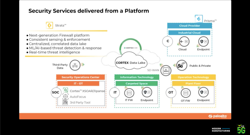 จากมุมมองของ Paloalto Networks หนึ่งในพันธมิตรของ AIS 5G ให้ข้อมูลว่าประเทศไทยในปัจจุบันการเชื่อมต่อระหว่าง IT (Information Technology) และ OT (Operational Technology) นั้นเกิดขึ้นอย่างหลวม ๆ เช่น การที่ OT นั้นยืมพลังการประมวลผลของ IT จาก Cloud หรือผู้ให้บริการผ่านเครือข่าย การบูรณาการ IT และ OT นั้นเกิดขึ้นเฉพาะตำแหน่ง ซึ่งเป็นการเริ่มต้นที่ดี การเชื่อมต่อแบบหลวม ๆ นี้จึงเป็นก้าวแรกในการเปลี่ยนแปลงสู่การทำงานอัตโนมัติเต็มรูปแบบในเวลาต่อไป