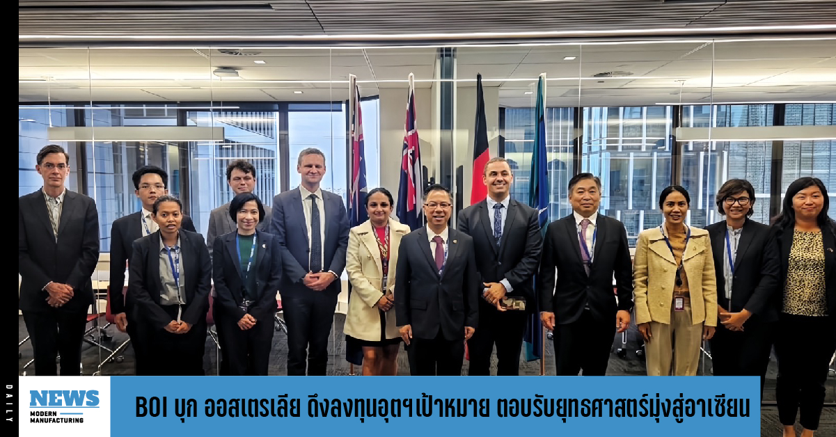 บีโอไอ โรดโชว์ออสเตรเลีย ชูโอกาสการลงทุนใหม่ ๆ ในอุตสาหกรรมเป้าหมาย เช่น ดิจิทัล ยานยนต์ไฟฟ้า เครื่องมือแพทย์ และอาหารแปรรูป รวมทั้งพบหน่วยงานพันธมิตร มุ่งยกระดับความสัมพันธ์ด้านการลงทุนระหว่างไทย – ออสเตรเลีย