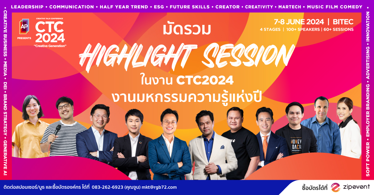 งาน AP Thailand presents CREATIVE TALK CONFERENCE 2024 “Creative Generation” นี่คือยุคของคนครีเอทีฟที่จะมารวมตัวกัน เพื่อสร้าง Creative Economy ให้เกิดขึ้นในประเทศไทย นำไปสู่การพัฒนาตัวเอง และพัฒนาธุรกิจอย่างสร้างสรรค์