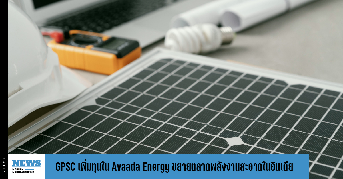 GPSC ประกาศเพิ่มทุน 2,500 ล้านบาท ตามสัดส่วนการถือหุ้นใน Avaada Energy พร้อมเดินหน้าพัฒนาโครงการโรงไฟฟ้าพลังงานแสงอาทิตย์หลังจากชนะการประมูลเพิ่ม 1,181 เมกะวัตต์ รองรับความต้องการใช้ไฟฟ้าในอินเดียพุ่ง
