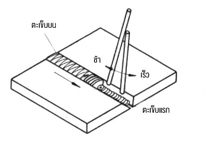 รูปที่ 56: การเดินลวดเชื่อม a) ในแนวราบ b) ในแนวตั้ง