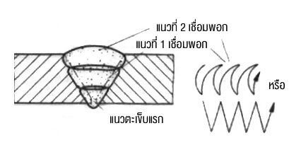 รูปที่ 47: วิธีการเดินลวดเชื่อมแบบส่ายวาดโค้ง และซิกแซกสำหรับการเชื่อมพอก