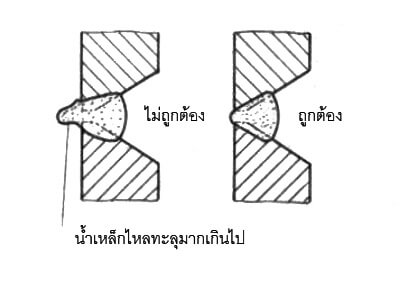 รูปที่ 45: ภาพตัดแสดงรอยเชื่อมตะเข็บแรกที่ถูกต้องและไม่ถูกต้อง
