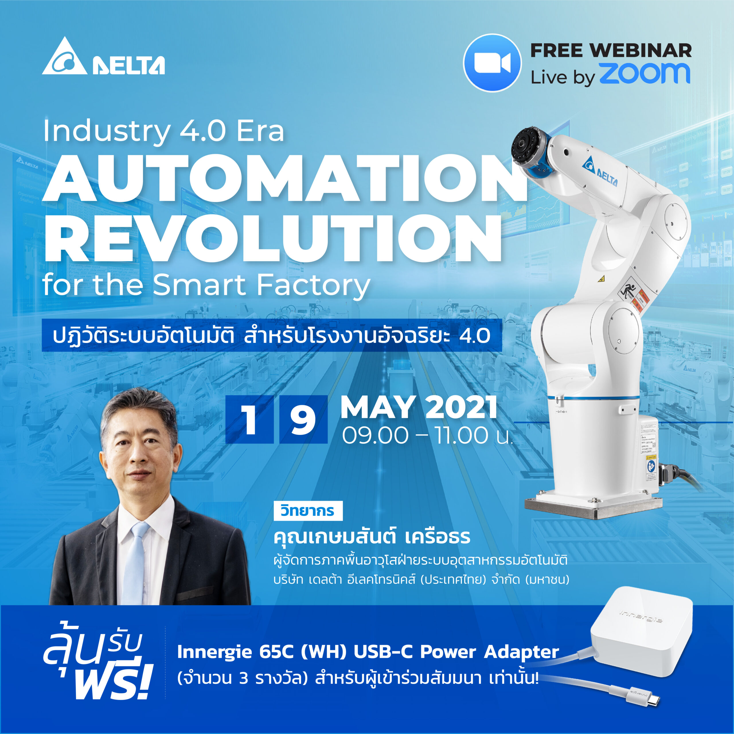 อัพเดทข้อมูลอุตสาหกรรมยุคใหม่ไปกับงานสัมมนาออนไลน์จากบริษัท เดลต้า อีเลคโทรนิคส์ (ประเทศไทย) จำกัด (มหาชน) จัดการสัมมนาออนไลน์ ในหัวข้อ ‘Industry 4.0 Era Automation Revolution for the Smart Factory : ปฏิวัติระบบอัตโนมัติ สำหรับโรงงานอัจฉริยะ 4.0’