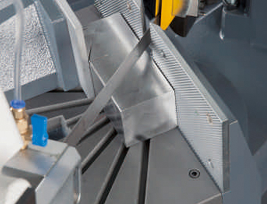 เป็นเครื่องเลื่อยสายพานขนาด 8 นิ้ว มีคุณสมบัติพิเศษในการตัดงานเอียงองศาได้มากถึง 60 องศา โดยใช้การสวิงหัวตัดเข้าหาชิ้นงาน ทำให้การทำงานมีความคล่องตัว และงานตัดมีความเที่ยงตรงแม่นยำสูง หัวตัดควบคุมด้วยกระบอกไฮโดรลิก ใช้งานคู่กับใบเลื่อยขนาดหน้ากว้าง 27มม. ที่มีความแข็งแรงและตัดงานได้เที่ยงตรง ความเร็วรอบปรับได้ 2 ระดับ เพื่อความเหมาะสมในการเลือกตัดชิ้นงาน มีระบบเช็คความตึงของใบเลื่อยและระบบหล่อเย็น