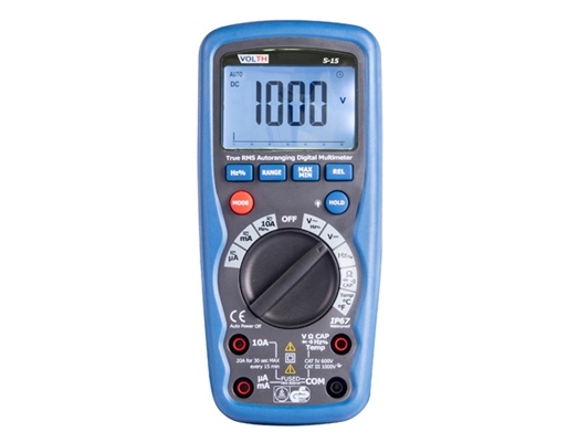 VOLTH S-15 is a combination of precision, features, easy to use, safety and reliability digital multimeter in the tough double molded plastic housing with IP67 waterproof. An over sized 6000 counts LCD display of high contrast for easy reading.