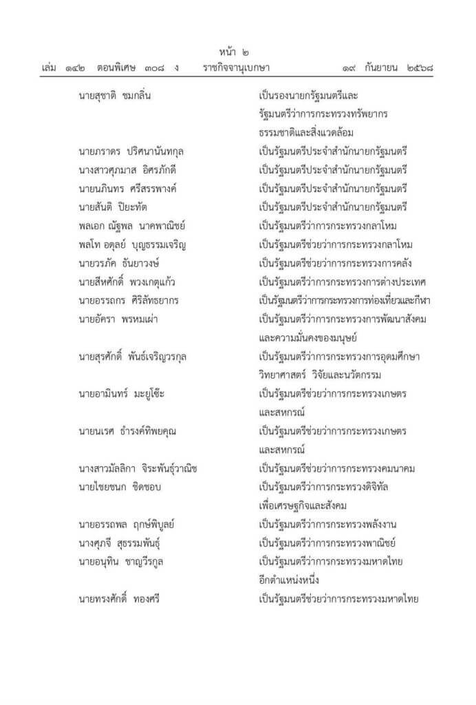 - นายเอกนิติ นิติทัณฑ์ประภาศ เป็นรองนายกรัฐมนตรีและรัฐมนตรีว่าการกระทรวงการคลัง