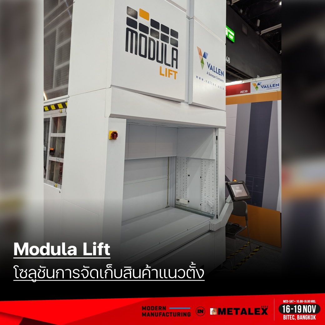 สัมผัสตัวจริงของ Modula Lift โซลูชันการจัดเก็บสินค้าแบบประหยัดพื้นที่ ได้ที่บูธ Vallen (Thailand) ภายในงาน Metalex 2022 ณ ไบเทคบางนา ระหว่างวันที่ 16-19 พฤศจิกายน 2565 10.00-18.00 น.