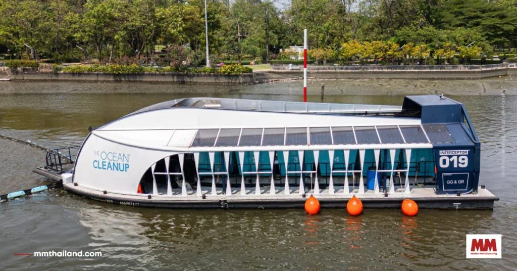 - ระบบกรองขยะอัตโนมัติ Interceptor มีสายพานลำเลียงที่สามารถเก็บขยะพลาสติกที่ลอยมากับน้ำ และนำขยะเหล่านั้นไปเก็บในถังเก็บขยะที่มีอยู่ในตัวเครื่อง ระบบนี้สามารถแยกขยะพลาสติกออกจากน้ำได้อย่างมีประสิทธิภาพ