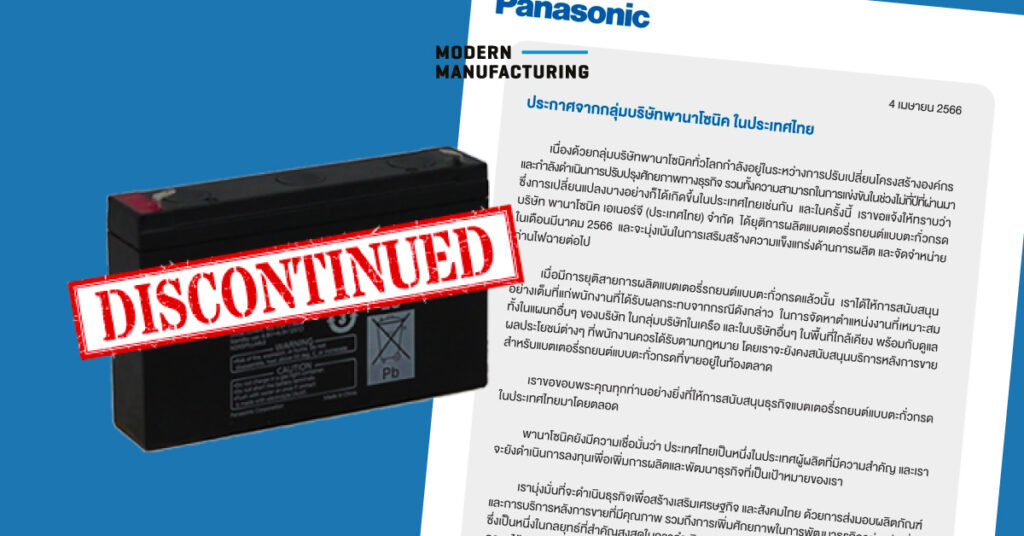 กลุ่มบริษัทพานาโซนิค ประเทศไทยได้ออกประกาศในวันที่ 4 เมษายน ที่ผ่านมาถึงการตัดสินใจยุติการผลิตแบตเตอรี่รถยนต์แบบตะกั่วกรดในเดือนมีนาคม 2566 และจะมุ่งเน้นในการเสริมสร้างความแข็งแกร่งด้านการผลิตและจัดจำหน่ายถ่านไฟฉายต่อไป