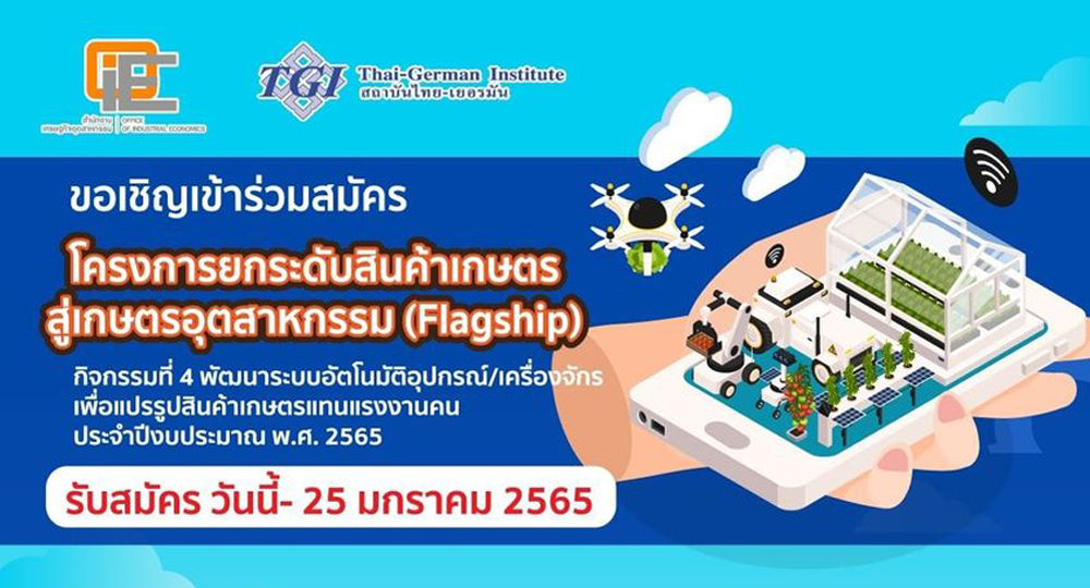 ขอเชิญเข้าร่วมสมัครโครงการยกระดับสินค้าเกษตรสู่เกษตรอุตสาหกรรม (Flagship) รับสมัครตั้งแต่ วันนี้- 25 มกราคม 2565
