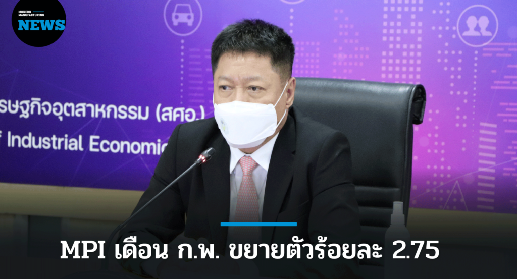 สศอ. เผย MPI เดือน ก.พ. ขยายตัวร้อยละ 2.75 จากช่วงเดียวกันของปีก่อน คาดปี 65 ขยายตัวร้อยละ 3.5 – 4.5
