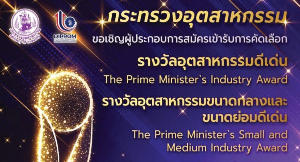 กระทรวงอุตสาหกรรม ขอเชิญผู้ประกอบการอุตสาหกรรม สมัครเข้ารับการคัดเลือก “รางวัลอุตสาหกรรม” ประจำปี 2566 รางวัลแห่งเกียรติยศของอุตสาหกรรมไทย (The Prime Minister’s Industry Award 2023)