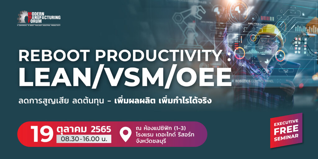 REBOOT PRODUCTIVITY : LEAN/VSM/OEE ลดการสูญเสีย ลดต้นทุน -เพิ่มผลผลิต เพิ่มกำไรได้จริง