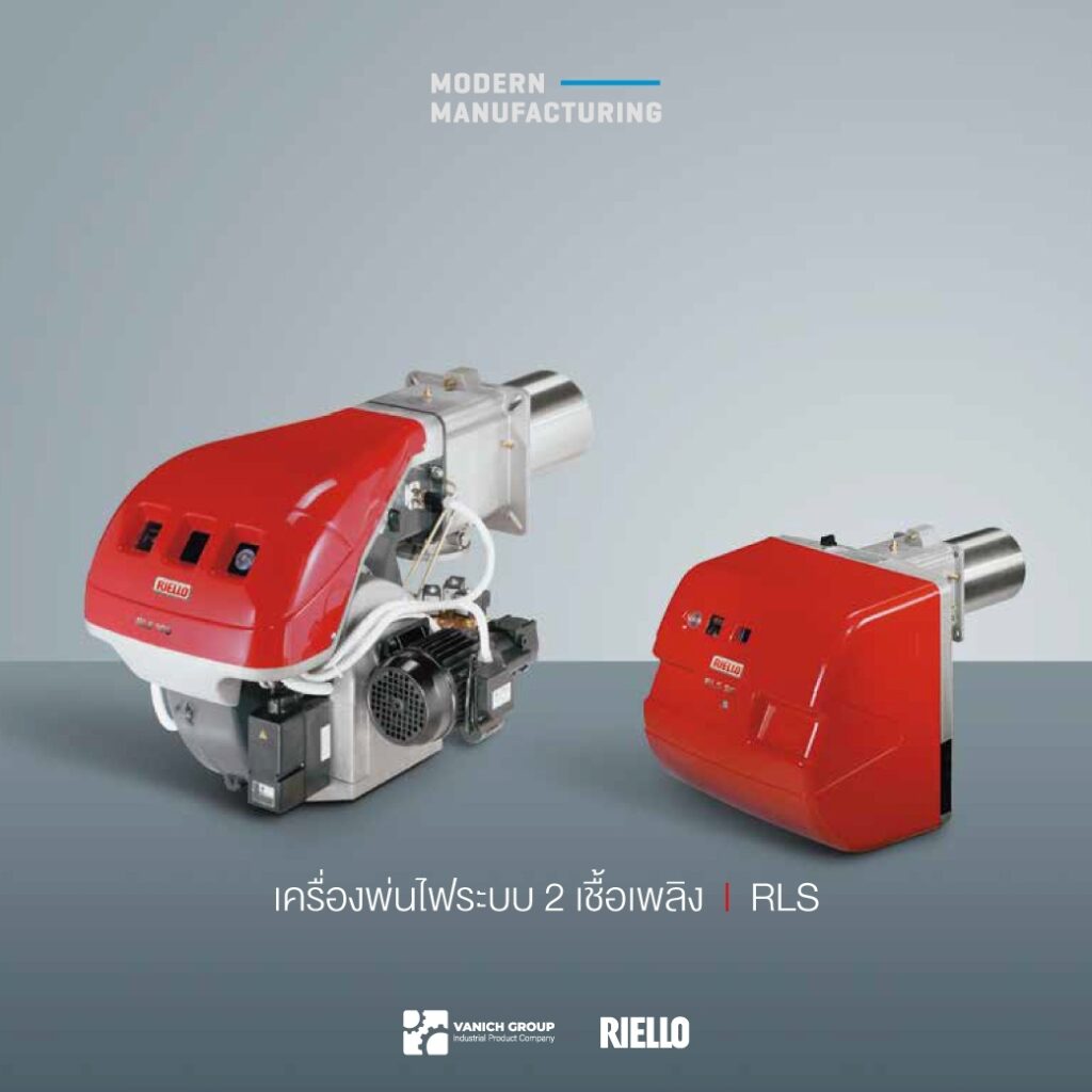 เครื่องพ่นไฟระบบ 2 เชื้อเพลิงที่น่าสนใจ คือ รุ่น RLS ควบคุมการเผาแบบ 2 จังหวะ ขนาดกำลังความร้อนอยู่ที่ 163 – 1395 kW มาพร้อมหน้าจอแสดงข้อมูลการทำงานแสดงข้อมูลอย่างหลากหลายทำให้วิเคราะห์ใช้งานได้อย่างง่ายดาย