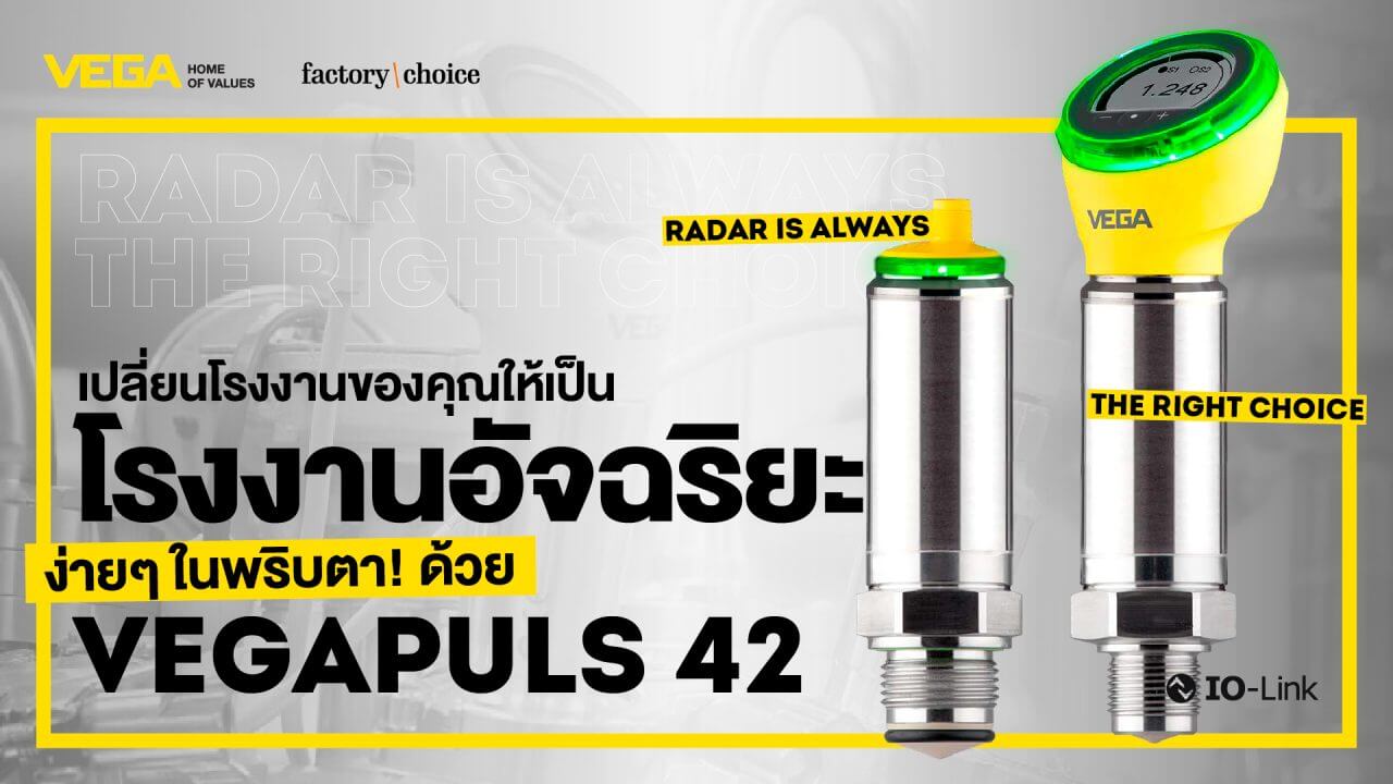 เมื่อระบบท่อและถังจัดเก็บมักเกิดการรั่วไหลได้ง่ายแต่สังเกตหรือตรวจพบได้ยาก จะดีกว่าแค่ไหนหากมีเซนเซอร์วัดระดับอัจฉริยะที่ช่วยให้คุณสามารถรับรู้ข้อมูลเหล่านี้ได้แบบ Real-Time VEGAPULS 42 เซนเซอร์วัดระดับอัจฉริยะจาก VEGA INSTRUMENTS ที่ติดตั้งง่ายใช้ได้เลยด้วย IO-Link Ready ไม่ต้องเสียเวลาตั้งค่าใหม่ ทั้งยังเข้าถึงข้อมูลได้ง่าย ๆ ผ่านเครือข่าย และแอปพลิเคชัน VEGA Tools จากสมาร์ทโฟน ไร้กังวลเมื่อเกิดปัญหาในระบบท่อเพราะสามารถแจ้งเตือนได้ทันที!