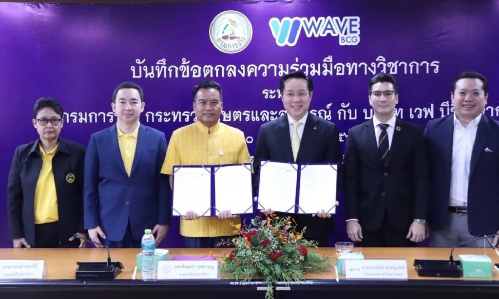 เวฟ บีซีจี เอ็มโอยู กรมการข้าว ร่วมมือพัฒนาองค์ความรู้และผลิตบุคลากรด้านพัฒนาพันธุ์ข้าว และกรรมวิธีการทำนาแบบเปียกสลับแห้ง หวังช่วยเพิ่มคุณภาพผลผลิตข้าว และพัฒนาคุณภาพชีวิตเกษตรกรไทย รวมทั้งเพิ่มขีดแข่งขันบนเวทีโลก เสริมศักยภาพการส่งออก และช่วยให้ประเทศไทยบรรลุเป้าหมายลดการปล่อยก๊าซเรือนกระจก