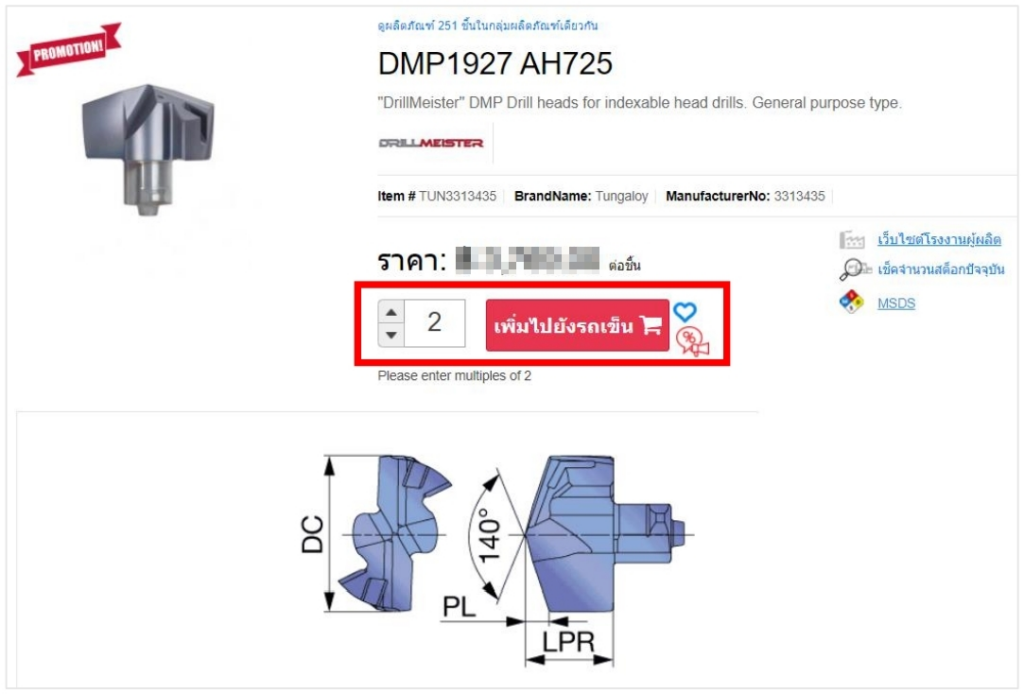 - โปรโมชั่นและราคาจะดูได้เมื่อลงชื่อเข้าใช้เท่านั้น เพราะเป็นข้อเสนอพิเศษสำหรับลูกค้าที่เปิดบัญชีกับ Tungaloy