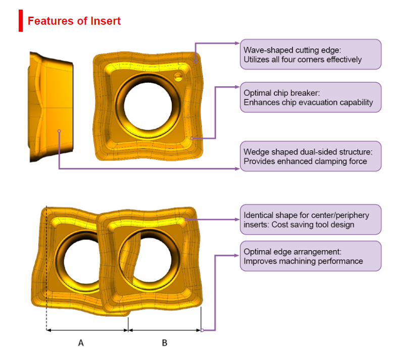 - คมตัดแบบ wave-shaped : เพิ่มประสิทธิผลทั้ง 4 มุม