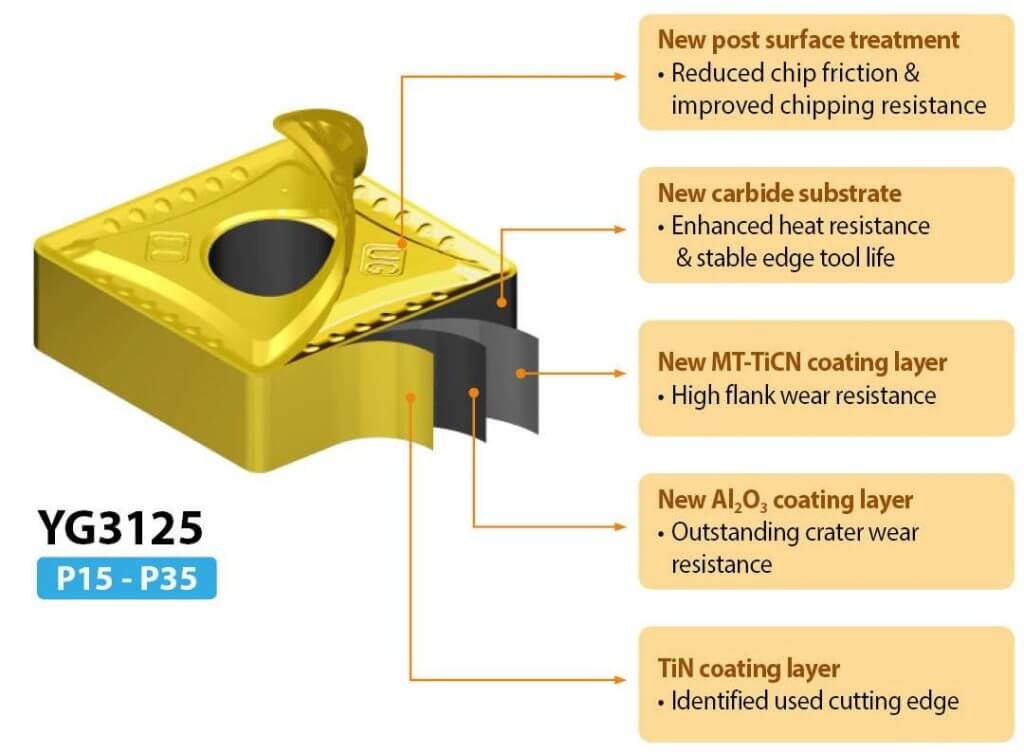 เปิดตัวเม็ดมีดกลึงเคลือบ CVD รุ่นใหม่ล่าสุด ‘YG3125’ สำหรับ Steel ที่มีประสิทธิภาพสูงสุดและให้สมรรถนะที่เสถียรที่สุดในตลาดตอนนี้